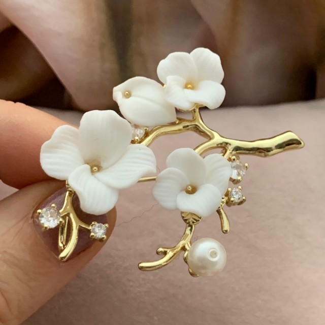 Hånd modellerte porselensblomster. Brent på 1240 grader så det blir hardt som marmor. 18karat gull på kobber med små zirkon stener i brosjen, og en større zirkon sten i selve blomsten. Leveres i gave eske. Tekstkort følger med.