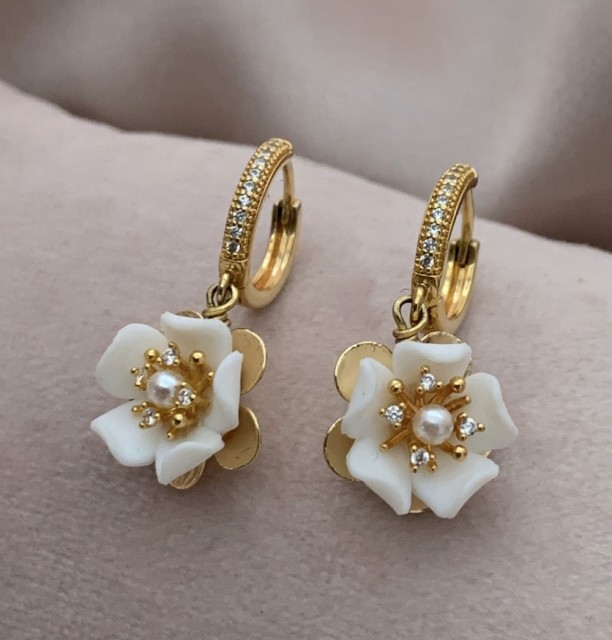 PEARL OF HOPE Øre guld Hånd modellert porselens blomst ca 19mm. Brent på 1240 grader så det blir hardt som marmor. 18karat gull på kobber med små zirkon stener i anhenget, og en perle i selve blomsten. Leveres i gave eske. Tekstkort følger med. PrisNOK795,00 inkl. mva. På lager: 2 stk. Antall Kjøp Ønskeliste Del dette