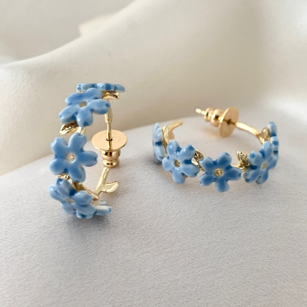 BLOMSTRING Forglemmegei Håndmodellerte små porselensblomster ca 8mm. Brent på 1240 grader så det blir hardt som marmor. Diameter på øredobben er 25mm og laget med 18karats gull på kobber. Leveres i gave eske. PrisNOK995,00 inkl. mva. Utsolgt Ønskeliste Del dette